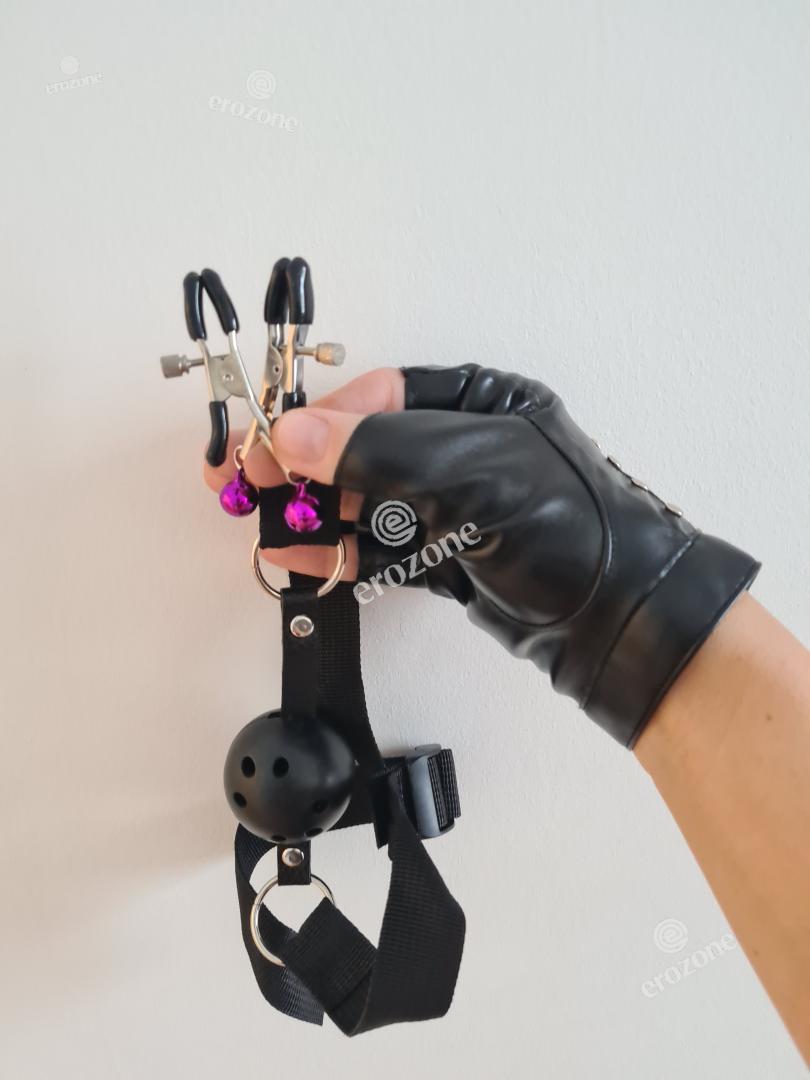-gagging - a ball in the mouth tied around the head